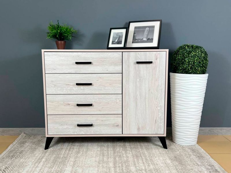 Комод-Тумба (1дв,4ящ) SVETLANA LOFT, сосна белая (Генезис)