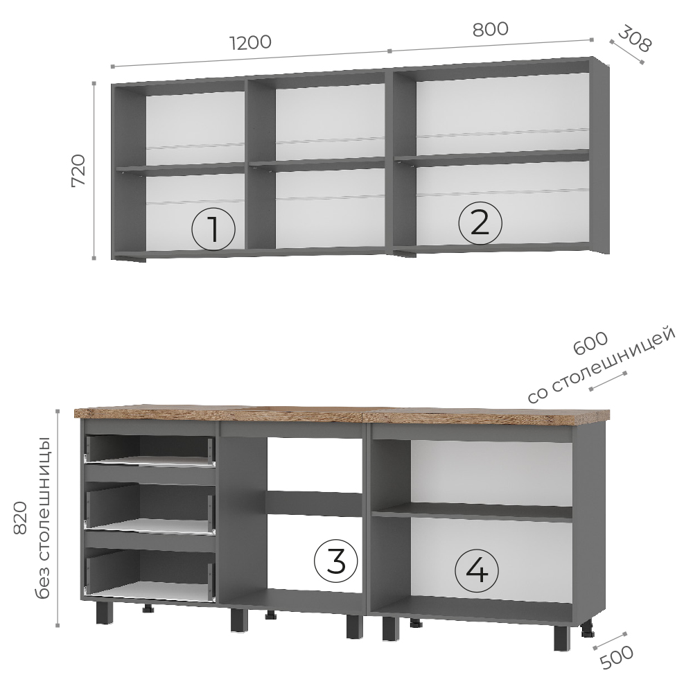 В комплекте раздельная столешница "Дуб кера" 38 мм (1200/800 мм).