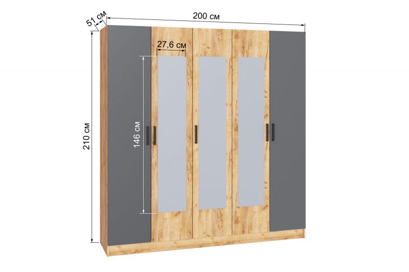 Артикул: A65645Шкаф 1600 мм Ларс крафт/графит (Микон)